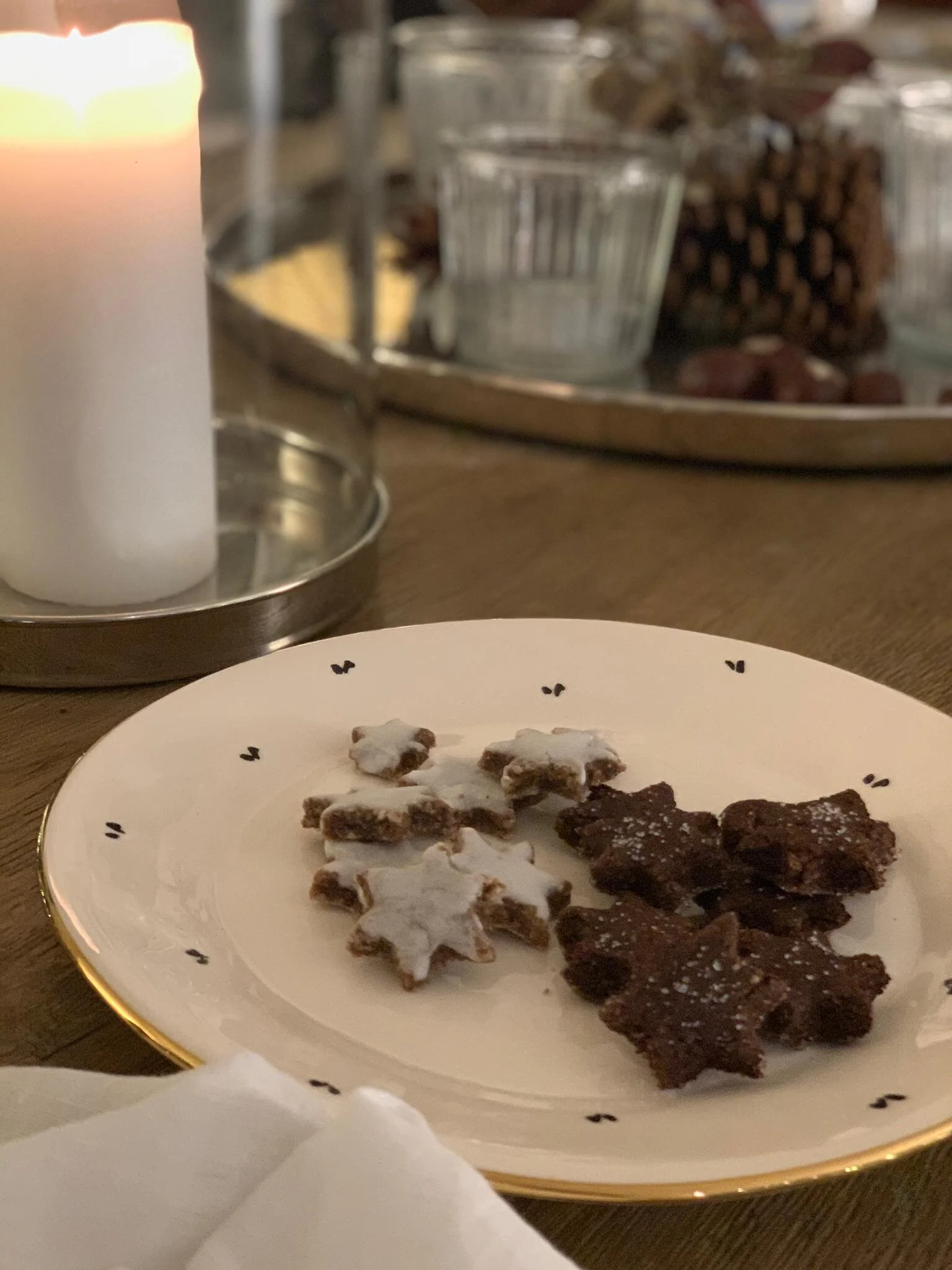 But the best part of it all? Finally getting to enjoy those cookies! Indeed, nothing beats the delicate crunch and soft chewiness of freshly-baked Zimtsterne (Romansh: cinnamon cookies similar to gingerbread biscuits) or Brünsli (Romansh: delicately spiced chocolate cookies; also known as Basler Brünsli.) The cookies are served on elegant plates with coffee or tea on the Advent Sunday afternoons and are happily shared with family and friends.