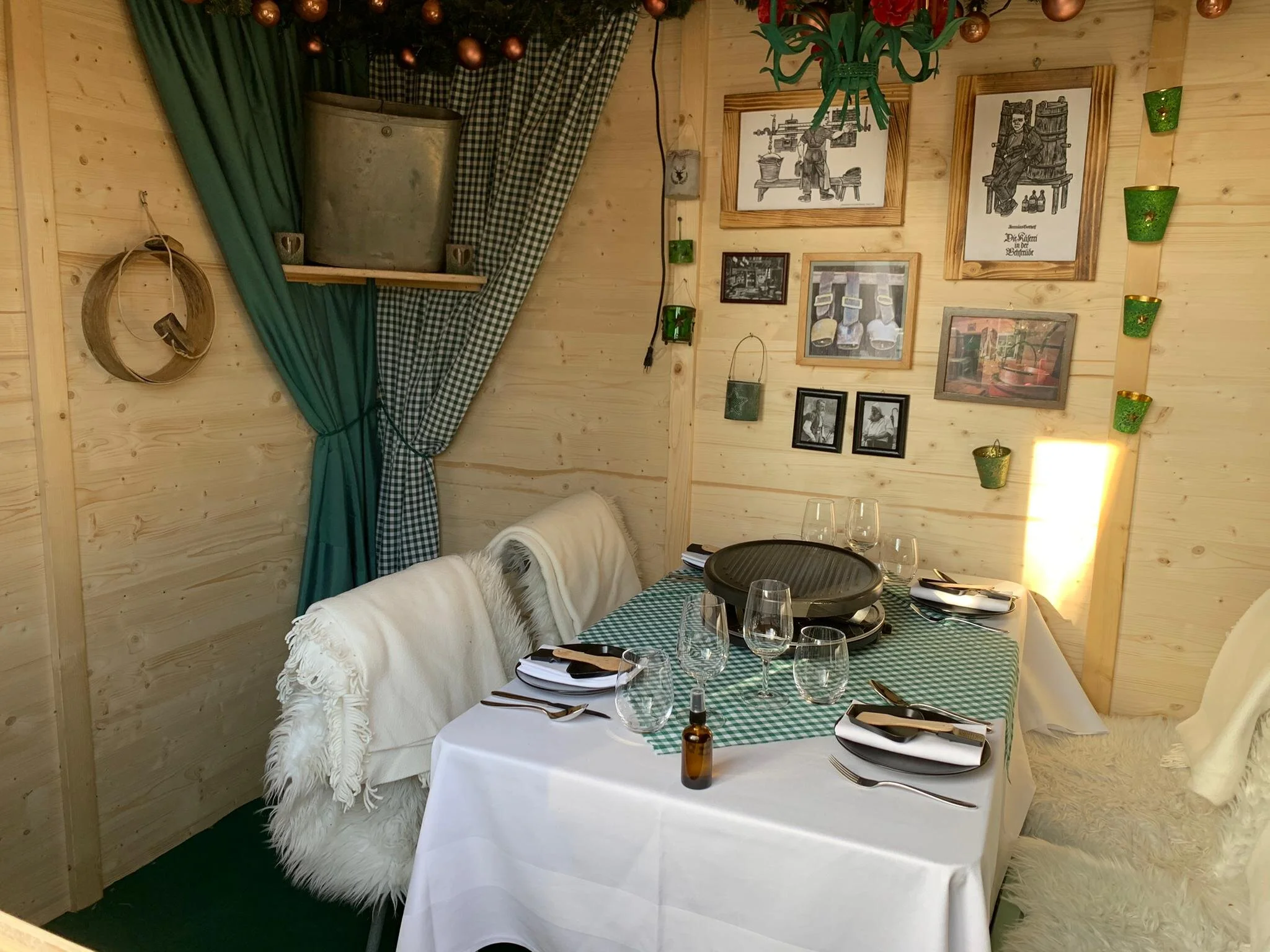 Traditional raclette huts welcome those with appetites sharpened by the cold winter air